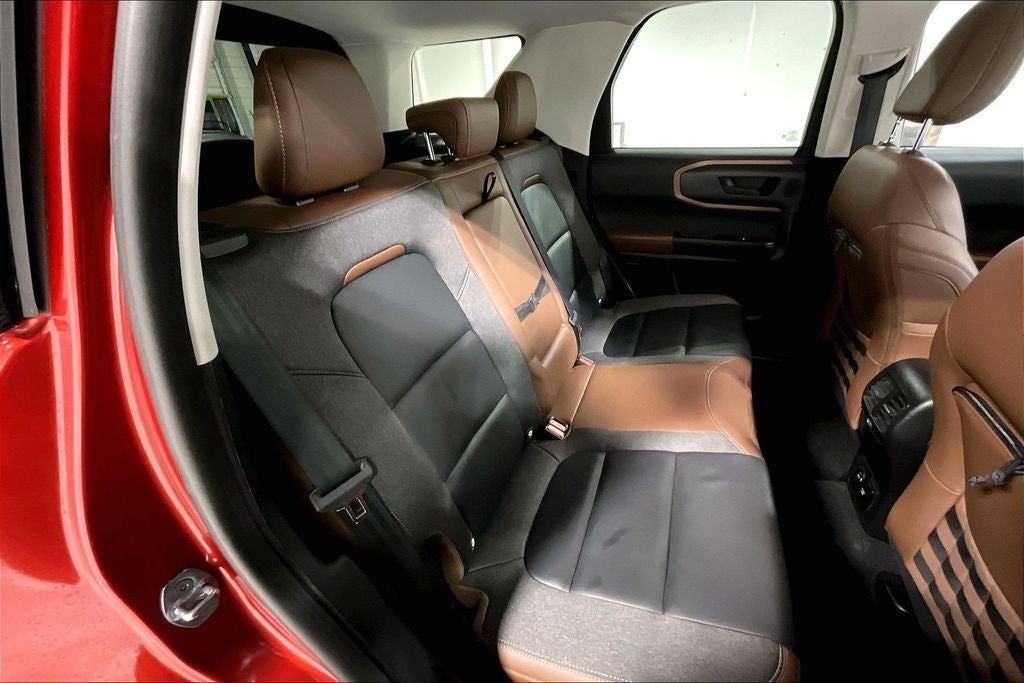 2022 Ford Bronco Sport Outer Banks Outer Banks Hot Pepper Red Tinted Clearcoat 4D Sport Utility 4WD 1.5L EcoBoost 8-Speed Automatic 1 Owner, New Feature, Apple CarPlay / Android Auto, Backup camera, Blind Spot Monitoring, Bluetooth®, Remote Start, Bronco Sport Outer Banks, 4D Sport Utility, 1.5L EcoBoost, 8-Speed Automatic, 4WD, Hot Pepper Red Tinted Clearcoat, Ebony w/Cloth Front Bucket Seats, 3.80 Axle Ratio, 4-Wheel Disc Brakes, 6 Speakers, ABS brakes, Air Conditioning, Alloy wheels, AM/FM radio: SiriusXM, AM/FM Stereo, Auto High-beam Headlights, Auto-dimming Rear-View mirror, Automatic temperature control, Brake assist, Compass, Delay-off headlights, Driver door bin, Driver vanity mirror, Dual front impact airbags, Dual front side impact airbags, Electronic Stability Control, Emergency communication system: SYNC 3 911 Assist, Equipment Group 300A, Four wheel independent suspension, Front anti-roll bar, Front Bucket Seats, Front Center Armrest, Front dual zone A/C, Front fog lights, Front reading lights, Fully automatic headlights, HD Radio, Heated door mirrors, Heated front seats, Heated steering wheel, Illuminated entry, Knee airbag, Leather Trimmed Heated Sport Contour Bucket Seats, Low tire pressure warning, Occupant sensing airbag, Outside temperature display, Overhead airbag, Overhead console, Panic alarm, Passenger door bin, Passenger vanity mirror, Power door mirrors, Power driver seat, Power Moonroof, Power passenger seat, Power steering, Power windows, Radio data system, Rain sensing wipers, Rear anti-roll bar, Rear Parking Sensors, Rear reading lights, Rear seat center armrest, Rear window defroster, Rear window wiper, Remote keyless entry, Roof rack: rails only, Security system, SiriusXM Radio, Speed control, Speed-sensing steering, Speed-Sensitive Wipers, Split folding rear seat, Steering wheel mounted audio controls, SYNC 3 Communications & Entertainment System, SYNC 3/Apple CarPlay/Android Auto, Tachometer, Tech Package, Telescoping steering wheel, Tilt steering wheel, Traction control, Trip computer, Universal Garage Door Opener (UGDO), Variably intermittent wipers, Wheels: 18 Ebony Black-Painted Aluminum, Wireless Charging Pad.