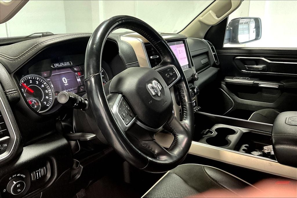 2022 Ram 1500 Laramie Laramie Diamond Black Crystal Pearlcoat 4D Crew Cab 4WD HEMI 5.7L V8 Multi Displacement VVT 8-Speed Automatic New Feature, Apple CarPlay / Android Auto, Backup camera, Blind Spot Monitoring, Bluetooth®, Heated seats, Leather seats, Remote Start, 1500 Laramie, 4D Crew Cab, HEMI 5.7L V8 Multi Displacement VVT, 8-Speed Automatic, 4WD, Diamond Black Crystal Pearlcoat, Black Leather, #1 Seat Foam Cushion, 10 Speakers, 2nd Row In Floor Storage Bins, 3 Rear Seat Head Restraints, 3.21 Rear Axle Ratio, 33 Gallon Fuel Tank, 4 Way Front Headrests, 4-Wheel Disc Brakes, 48V Belt Starter Generator, 4G LTE Wi-Fi Hot Spot, 8.4 Touchscreen Display, ABS brakes, Adjustable pedals, Air Conditioning, Alloy wheels, AM/FM radio: SiriusXM, Apple CarPlay, Apple CarPlay/Android Auto, Audio memory, Auto High Beam Headlamp Control, Auto-dimming door mirrors, Auto-Dimming Exterior Driver Mirror, Auto-dimming Rear-View mirror, Automatic temperature control, Blind Spot & Cross Path Detection, Brake assist, Bright Day Light Opening Moldings, Bumpers: chrome, Chrome Appearance Group, Chrome Exterior Mirrors, Chrome Tow Hooks, Compass, Connectivity - US/Canada, Convex Wide-Angle Mirror Insert, Delay-off headlights, Dome Dual LED Reading Lamp, Driver door bin, Driver Seat Memory, Driver vanity mirror, Dual front impact airbags, Dual front side impact airbags, Dual-Pane Panoramic Sunroof, Electronic Stability Control, Exterior Mirrors Courtesy Lamps, Exterior Mirrors w/Heating Element, Exterior Mirrors w/Memory, Exterior Mirrors w/Supplemental Signals, Foam Bottle Insert (Door Trim Panel), For Details, Visit DriveUconnect.com, Front anti-roll bar, Front Center Armrest w/Storage, Front dual zone A/C, Front fog lights, Front License Plate Bracket, Front reading lights, Front Seat Back Map Pockets, Front wheel independent suspension, Fully automatic headlights, Garage door transmitter, Global Telematics Box Module (TBM), Google Android Auto, GPS Antenna Input, Heated door mirrors, Heated Front Seats, Heated front seats, Heated Steering Wheel, Heated steering wheel, Heavy-Duty Engine Cooling, Illuminated entry, Integrated Center Stack Radio, Laramie Level I Equipment Group, Leather steering wheel, Leather Trim 40/20/40 Bench Seat, LED Dome/Reading Lamp, Low tire pressure warning, Manufacturer's Statement of Origin, Memory seat, Occupant sensing airbag, Outside temperature display, Overhead airbag, Overhead console, Panic alarm, ParkSense Front/Rear Park Assist w/Stop, ParkView Rear Back-Up Camera, Passenger door bin, Passenger vanity mirror, Pedal memory, Power 2-Way Driver Lumbar Adjust, Power 2-Way Passenger Lumbar Adjust, Power 8-Way Driver & Passenger Seats, Power door mirrors, Power driver seat, Power passenger seat, Power steering, Power windows, Power-Folding Mirrors, Quick Order Package 25H Laramie, Radio data system, Radio: Uconnect 5 W w/8.4 Display, Rain Sensitive Windshield Wipers, Rear 60/40 Folding Seat, Rear anti-roll bar, Rear seat center armrest, Rear step bumper, Rear Underseat Compartment Storage (DISC), Rear window defroster, Remote keyless entry, Remote Tailgate Release, Security system, SiriusXM Radio Service, Speed control, Split folding rear seat, Steering wheel mounted audio controls, Tachometer, Telescoping steering wheel, Tilt steering wheel, Traction control, Trip computer, Turn signal indicator mirrors, Variably intermittent wipers, Ventilated Front Seats, Ventilated front seats, Voltmeter, Wheel to Wheel Side Steps, Wheels: 20 x 9 Premium Paint/Polished.