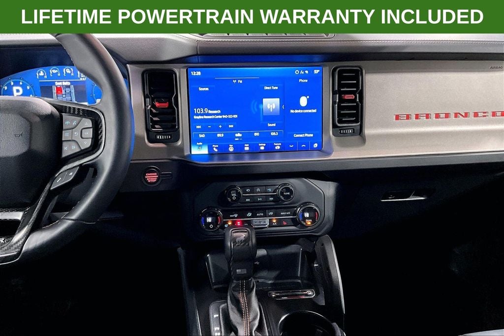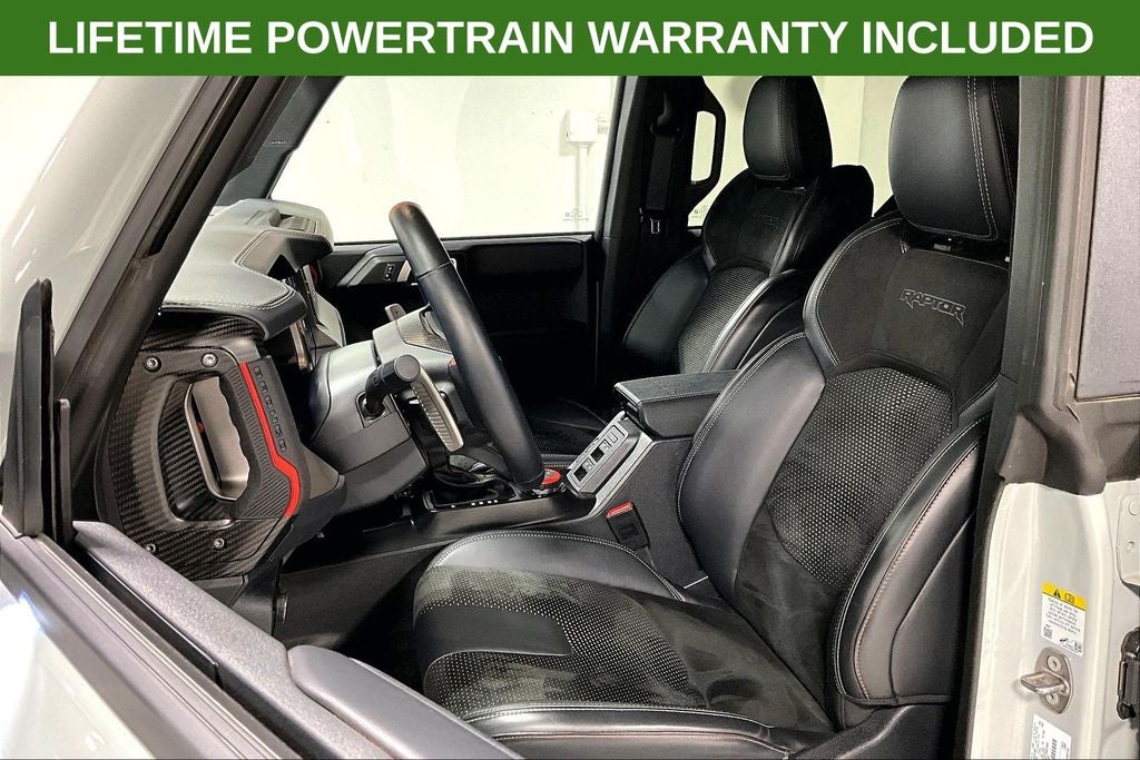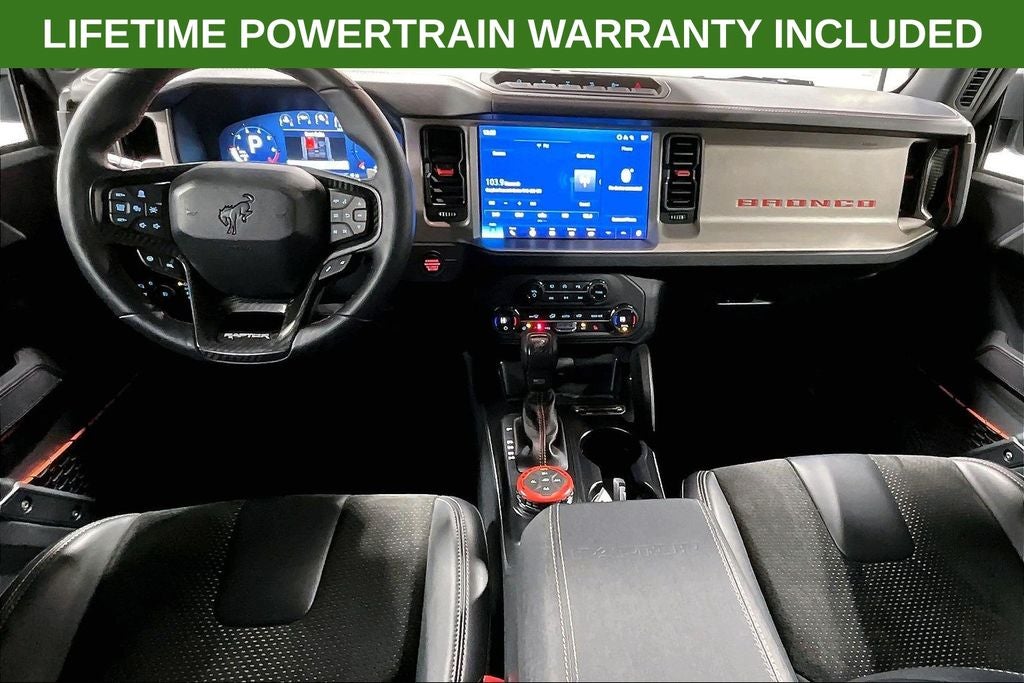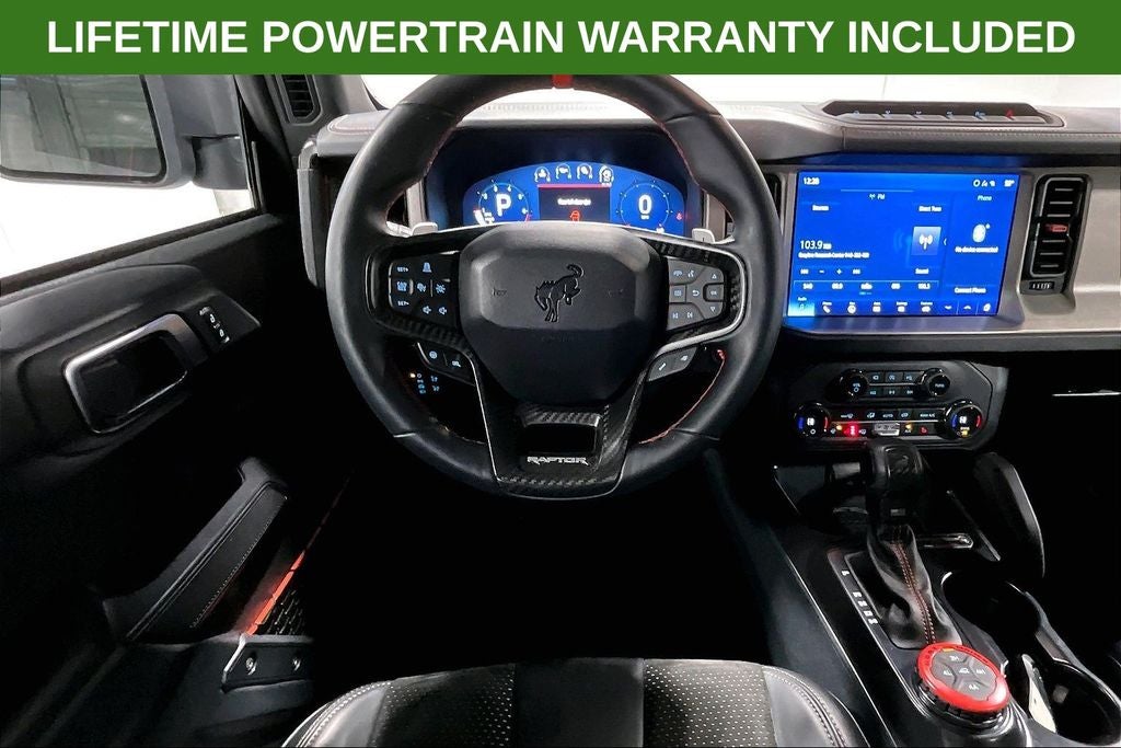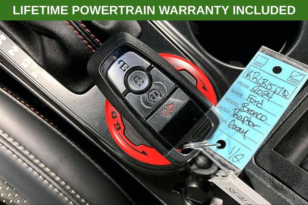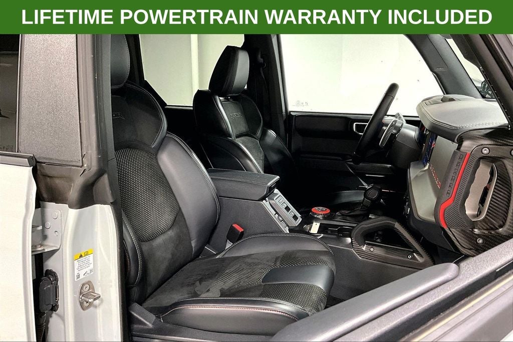 2024 Ford Bronco Raptor Raptor Cactus Gray 4D Sport Utility 4WD 3.0L EcoBoost V6 10-Speed Automatic 1 Owner, New Feature, Apple CarPlay / Android Auto, Backup camera, Blind Spot Monitoring, Bluetooth®, Heated seats, Leather seats, Remote Start, Bronco Raptor, 4D Sport Utility, 3.0L EcoBoost V6, 10-Speed Automatic, 4WD, Cactus Gray, Black Onyx w/Leather-Trimmed/Vinyl Bucket Seats, 10 Speakers, 4-Wheel Disc Brakes, ABS brakes, Air Conditioning, Alloy wheels, AM/FM radio: SiriusXM with 360L, Auto High-beam Headlights, Auto-dimming Rear-View mirror, Automatic temperature control, Brake assist, Compass, Connected Navigation, Convertible HardTop, Convertible roof lining, Delay-off headlights, Driver door bin, Driver vanity mirror, Dual front impact airbags, Dual front side impact airbags, Electronic Stability Control, Emergency communication system: 911 Assist, Exterior Parking Camera Rear, Front anti-roll bar, Front Bucket Seats, Front Center Armrest, Front dual zone A/C, Front fog lights, Front reading lights, Front wheel independent suspension, Fully automatic headlights, Garage door transmitter, Glass rear window, Heated door mirrors, Heated front seats, Heated steering wheel, Illuminated entry, Integrated roll-over protection, Leather Shift Knob, Low tire pressure warning, Marine Grade Vinyl Bucket Seats, Navigation system: Connected Navigation, Occupant sensing airbag, Outside temperature display, Overhead airbag, Overhead console, Panic alarm, Passenger door bin, Passenger vanity mirror, Power door mirrors, Power steering, Power windows, Radio data system, Radio: B&O Sound System by Bang & Olufsen, Rear anti-roll bar, Rear seat center armrest, Rear window defroster, Rear window wiper, Remote keyless entry, Security system, SiriusXM Radio w/360L, Speed control, Split folding rear seat, Steering wheel mounted audio controls, SYNC 4, Tachometer, Telescoping steering wheel, Tilt steering wheel, Traction control, Trip computer, Turn signal indicator mirrors, Variably intermittent wipers, Voltmeter, Wheels: 17 Black High Gloss-Painted Aluminum.