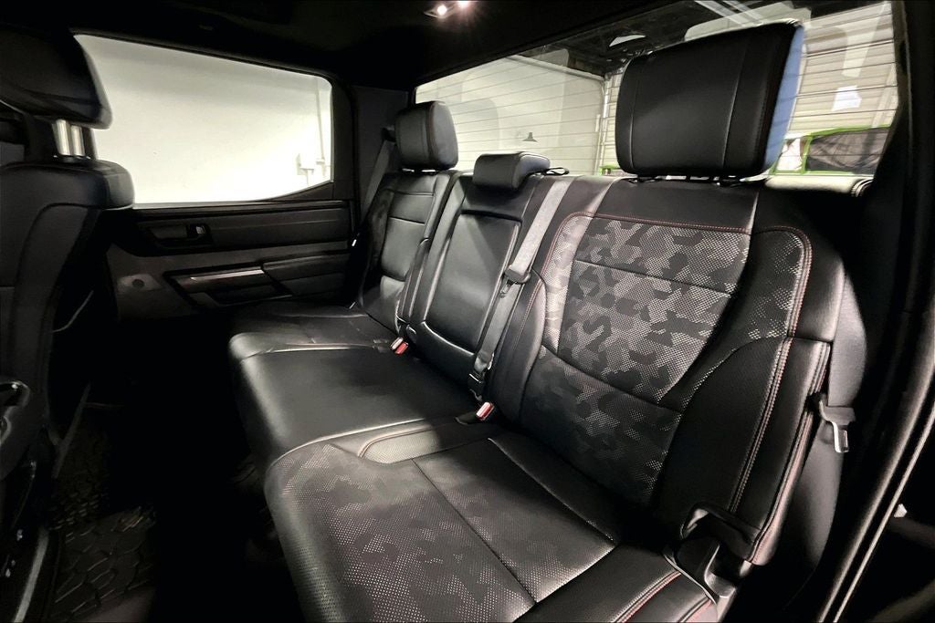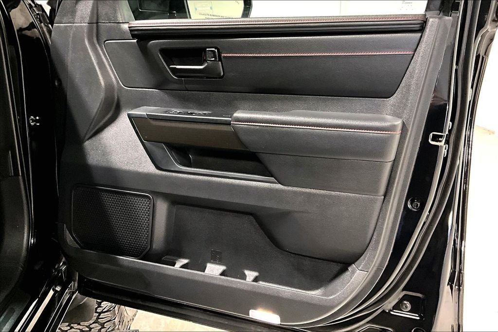 2024 Toyota Tundra Hybrid TRD Pro TRD Pro Midnight Black Metallic 4D Crew Cab 4WD 3.4L V6 10-Speed Automatic New Feature, Apple CarPlay / Android Auto, Backup camera, Blind Spot Monitoring, Bluetooth®, Heated seats, Leather seats, Navigation system, Sunroof / Moonroof, Tundra Hybrid TRD Pro, 4D Crew Cab, 3.4L V6, 10-Speed Automatic, 4WD, Midnight Black Metallic, Black w/Leather Seat Trim, 12 Speakers, 3.31 Axle Ratio, 4-Wheel Disc Brakes, ABS brakes, Air Conditioning, Alloy wheels, AM/FM radio: SiriusXM, Apple CarPlay/Android Auto, Auto High-beam Headlights, Auto-dimming door mirrors, Auto-dimming Rear-View mirror, Automatic temperature control, Brake assist, Bumpers: body-color, Delay-off headlights, Driver door bin, Driver vanity mirror, Dual front impact airbags, Dual front side impact airbags, Electronic Stability Control, Emergency communication system: Safety Connect (10-year trial), Exterior Parking Camera Rear, Front anti-roll bar, Front Bucket Seats, Front Center Armrest, Front dual zone A/C, Front fog lights, Front reading lights, Front wheel independent suspension, Fully automatic headlights, Garage door transmitter: HomeLink, Heated & Ventilated Front Bucket Seats, Heated door mirrors, Heated front seats, Heated steering wheel, Illuminated entry, Knee airbag, Leather Shift Knob, Low tire pressure warning, Memory seat, Navigation System, Occupant sensing airbag, Outside temperature display, Overhead airbag, Overhead console, Panic alarm, Passenger door bin, Passenger vanity mirror, Power door mirrors, Power driver seat, Power moonroof, Power passenger seat, Power steering, Power windows, Radio data system, Radio: Premium Audio w/JBL, Rear reading lights, Rear seat center armrest, Rear step bumper, Rear window defroster, Remote keyless entry, Security system, SofTex Seat Trim, Speed control, Speed-sensing steering, Split folding rear seat, Sport steering wheel, Steering wheel mounted audio controls, Tachometer, Telescoping steering wheel, Tilt steering wheel, Traction control, Trip computer, Turn signal indicator mirrors, Variably intermittent wipers, Ventilated front seats, Voltmeter, Wheels: 18 x 8 Black BBS Forged Aluminum.